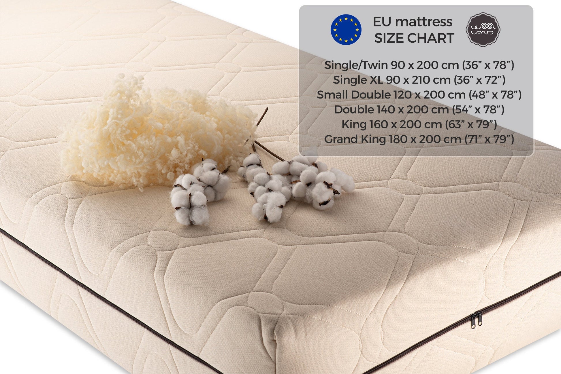 The woolland Organic cotton and wool mattress cover EU size